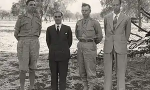 ![]() Після підписання перемир'я у Кассіблі 3 вересня 1943 року Зліва направо: Кеннет Стронг, Кастеллано, Вальтер Беделл Сміт та Франко Монтанарі. Після підписання перемир'я у Кассіблі 3 вересня 1943 року Зліва направо: Кеннет Стронг, Кастеллано, Вальтер Беделл Сміт та Франко Монтанарі. | |||||||
