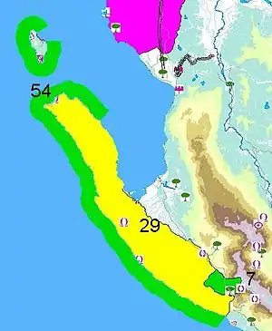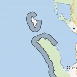 ![]() Вид на острів Сазані Вид на острів Сазані | |