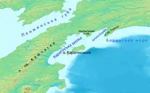 Острів Карагінський (рос. остров Карагинский) — острів у Карагінській затоці Берингова моря, біля східного берега півострова Камчатка, між 58° 28' і 50° 12' зх. ш. і 182° 20' і 181° 14' сх. д. Відокремлений від материка протокою Літке. Довжина острова 101 км, найбільша ширина — 27 км, площа — 2404 км². Територія острова входить до складу Коряцького округу Камчатського краю.