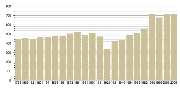 Динаміка населення (base Cassini de l'EHESS pour les nombres retenus jusque 1962[3], base Insee à partir de 1968 (population sans doubles comptes puis population municipale à partir de 2006)[4] · [5] ):