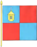 Квадратне полотнище поділене вертикально і горизонтально на чотири рівновеликі червоно-сині поля: перше і четверте поля червоні, друге і третє сині. У першому червоному полі біля древка по центру поля жовта восьмикутна у плані маківка церкви з синіми шибками вікна із жовтим дахом, увінчана металевим православним хрестом білого кольору, обпертим на жовту кулю. В інших полях прапора символіка відсутня.