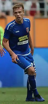 | Павло Карасьлов у футболці «Тамбова» (2019) | ||||||||||||||||||||||||||||||||||