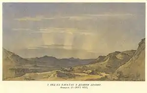 Рисунок під назвою «Долина Кугус» позначено № 28. По дорозі з цієї долини загін побував у долині Турш (Ториш). Тут Шевченко виконав твори «Долина Турш» і «Гора Кулаат» (32, 33). У кінці липня чи на початку серпня експедиція зупинилася поблизу джерела Долнапа та однойменного кладовища біля північних схилів гори Каратаучик. Цю місцевість Шевченко відтворив в акварелі «Туркменське кладовище в долині Долнапа»[4]. Наступна зупинка — урочище Тарла. Це була остання копальня, в якій досліджено поклади кам'яного вугілля. Тут експедиція заклала ряд шурфів. Шевченко виконав олівцем кілька зарисовок цієї місцевості й малюнки «Тарла», «Долина в гірській місцевості» та інші. Завдяки нумерації на малюнках ми довідуємося, що з долини Тарла загін попрямував не до Новопетровського укріплення, а до затоки Кочак. Дорогою художник виконав малюнок «Долина серед гір» (39) та два малюнки «Кочак» (40 і 41). На березі цієї затоки були продовольчі склади експедиції, сюди приходили пароплави з устаткуванням і поштою. Дослідники завернули до затоки, щоб відправити пароплавом інструменти, зразки порід тощо, а після цього повернулися на короткий відпочинок в Тарлі. Шевченко зробив тоді ще одну замальовку цієї місцевості (42). Наступний перепочинок був знову поблизу Ханга-Баби, про що свідчать малюнки «Туркменські аби» та «Ханга-Баба» (44 і 45). На початку вересня 1851 дослідники повернулися до Новопетровського укріплення і пробули тут близько двох тижнів.