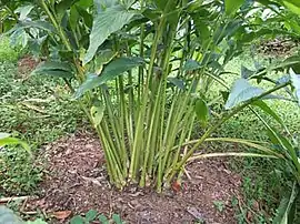 Багаторічна трав'яниста рослина з великим кореневищем, що утворює декілька трав'янистих стебел заввишки 2-3 м. Листки короткочерешкові, ланцетоподібної форми, до 70 см завдовжки і 8 см завширшки. Квітконоси заввишки до 60 см, у нижній частині покриті лускатими листочками. Квітки білого або блідо-зеленого кольору, зигоморфні, зібрані в китиці, розміщуються в пазухах приквітків. Чашечка 3-зубчаста, віночок з 3 пелюсток. Тичинок 3, з них тільки одна фертильна. Дві інші розростаються подібно пелюсткам віночка і приростають до маленької губи. Плід — 3-гніздова коробочка, що розтріскується, жовтуватого або бурого забарвлення, 1-2 см завдовжки і 0,8 см завширшки. Насіння неправильно-незграбної форми, червонувато-сірого або червонувато-бурого забарвлення. В одній коробочці міститься до 20 насінин.