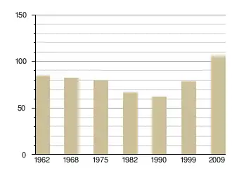 - Insee : historique des populations par commune depuis le recensement de 1962, наведено за французькою вікіпедією