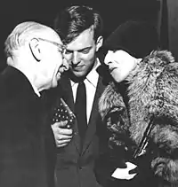 ![]() Карен Бліксен (праворуч) поряд з Юрієм Москвітіним та Ігорем Стравінським | ||||