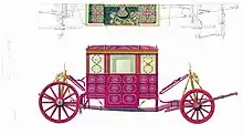 Карети, насамперед, використовувалися аристократами (особливо жінками), і могли мати багато прикрас і позолоту. Ці вози мали чотири колеса зі стрижневою системою на шворнях, що дозволяло колесам повертатися, та мали від двох до чотирьох коней, у залежності від того, як їх було зроблено (складні прикраси із золотою підкладкою робили карету важчою).