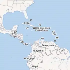 | ісп. Mar Caribe, англ. Caribbean Sea, фр. Mer des Caraïbes, нід. Caraïbische Zee, пап'ям. Laman Karibe | |