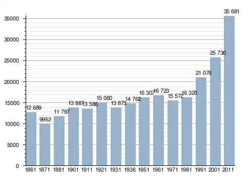 Станом на 31 грудня 2014 року в муніципалітеті офіційно проживало 535 іноземців з 46 країн, серед них 307 громадян країн Євросоюзу та 7 громадян України.[4]
