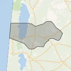 Муніципалітет розташований на відстані[2] близько 500 км на південний захід від Парижа, 50 км на північний захід від Бордо.