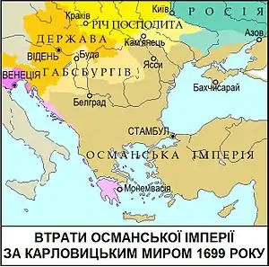 Почався у жовтні 1698 року у Карловицях (нині Сремські Карловці). 16 січня 1699 року підписано договір Османської імперії з Річчю Посполитою, за яким останній офіційно повернули Поділля, включаючи частину території сучасної Тернопільщини (так звана Чортківська нахія Кам'янецького еялету Подільського пашалику). Бучацький мирний договір 1672 року втратив юридичну силу.