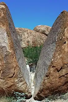 На брили впливають більш глибокі перепади температур удень та ночі в посушливій зоні пустелі, де знаходиться заповідник. В денний час скелі трохи розширюються, а після приходу вночі вони трохи стискаються, повторюючи процес кожні 24 години. Ці повторні цикли розширення і стиснення, які називаються термостійким вивітрюванням, створюють тріщини, які іноді йдуть настільки глибоко, що брила повністю розколюється навпіл.[4]