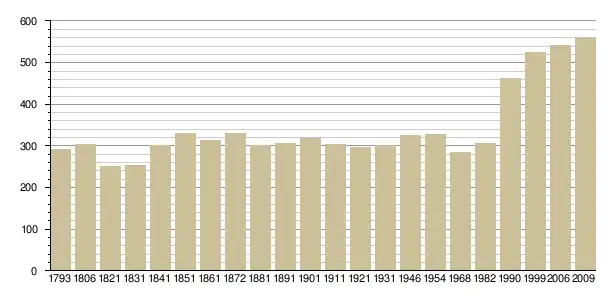 Динаміка населення (base Cassini de l'EHESS pour les nombres retenus jusque 1962[3], base Insee à partir de 1968 (population sans doubles comptes puis population municipale à partir de 2006)[4] · [5] ):