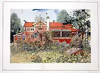 1888 року батько Карін, Адольф Бергьоо, передав молодій родині у володіння невеликий дерев'яний будинок поблизу міста Сундборн. Розпочався довгий період облаштування будинку для потреб родини, яка постійно збільшувалася. Дерев'яний будиночок в родині іронічно називали «Хижка». З роками до дерев'яної частини Карл додав кам'яну, де художник і облаштував нову власну майстерню. Автопортрет 1912 року створений в її інтер'єрі.