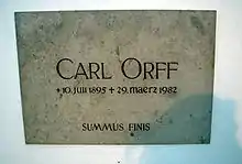 Помер Орф у Мюнхені, похований у церкві бенедиктинського монастиря Андекс, що знаходиться західніше Мюнхена (округ Штарнберг).