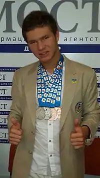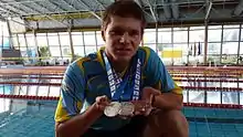 ![]() Артем Карниш МСМК України з плавання серед спортсменів із вадами слуху. Артем Карниш МСМК України з плавання серед спортсменів із вадами слуху. | |||||||||||||||||||||||||||