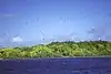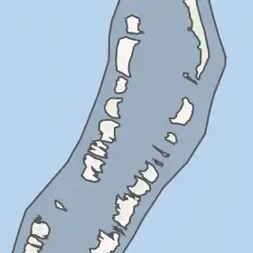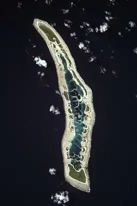 ![]() Знімок острова Каролайн, зроблений NASA з орбіти Землі; північ у верхньому правому куті. Два найбільші моту Нейк (згори) та Південний (внизу) і мають близько 500 в ширину. | |
