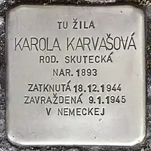 Вона була жертвою расового гонінням фашистського терору. Після придушення Словацького національного повстання (SNP) вона та її чоловік були затримані (18 грудня 1944 р.), ув'язнені в Банській Бистриці та страчені в Немецкі.