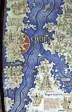 Материкова частина південно-східної Азії з містами "Сцірно", "Почанг" і "Ава", що вважаються зображенням Аюттхаї в Таїланді, та Багану та Інви в М'янмі.