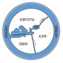 Гіпотетична реконструкція мапи світу Анаксімандра (610–546 до н.е.)