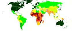 Мапа світу, що показує середню тривалість життя