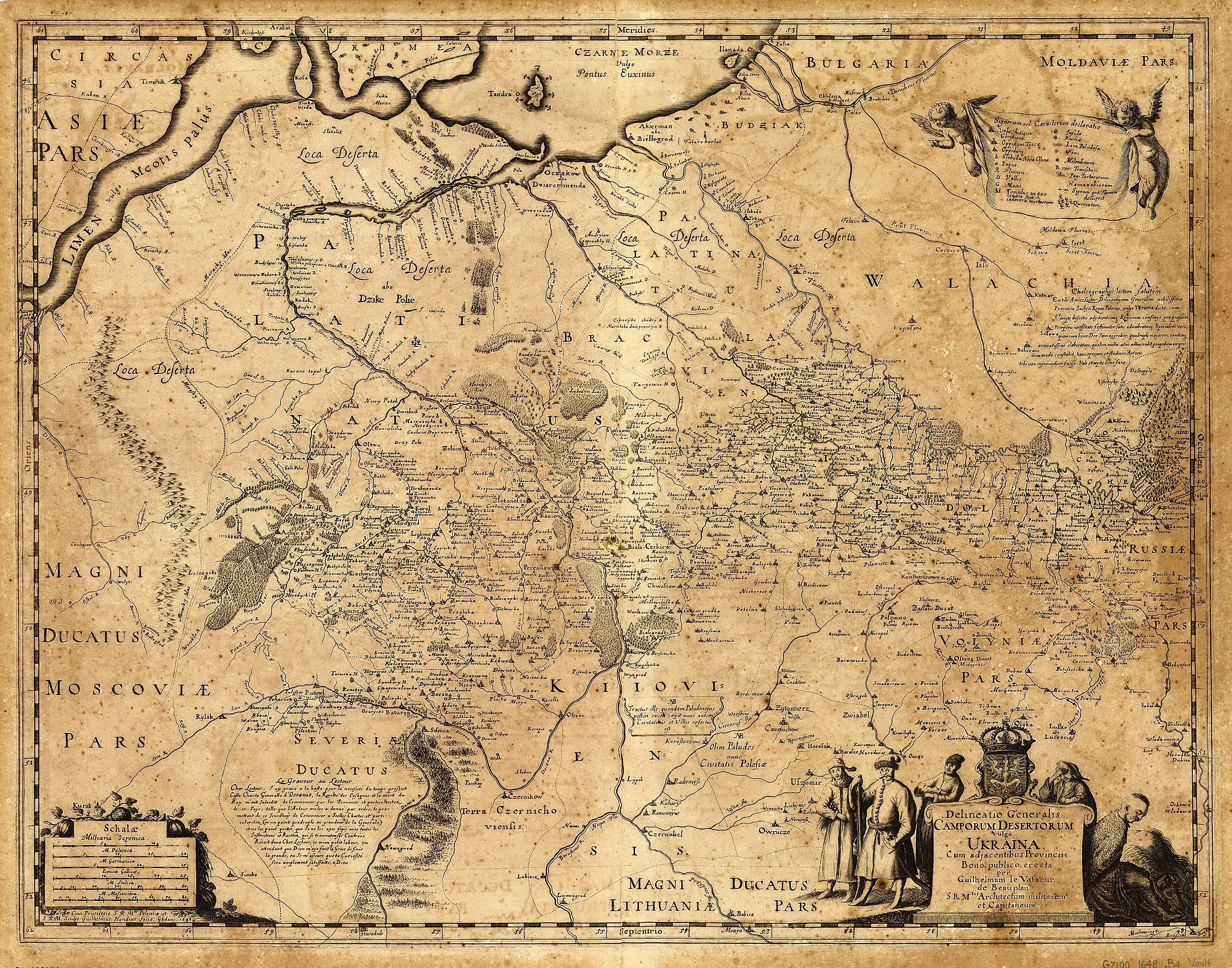 ![]() «Загальний план Диких полів, простіше кажучи, Україна, з належними провінціями» Ґійома Боплана, 1648 рік |