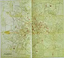 | 1905 | Плян Львова | невідомий | Літографія. Багатоколірна. 38x51 см. | ![]() |