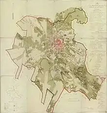 | 1836 | нім. Lemberg mit seinen Umgebungen nach der Original Aufname des k. k. General-Quartiermeisters-Stabes auf Stein graviert im Jahre 1836 / укр. Львів з його околицями на основі оригінального топографічного знімання ц.-к. генерального квартирмейстерського штабу, вигравіювано на камені в 1836 році | невідомий | Літографія. Багатоколірна. 84,5x63 см. | ![]() |