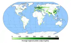 - Hijmans, Robert (2001). Global distribution of the potato crop. [American Journal of Potato Research] 78 (6): 403–12. doi:10.1007/BF02896371.