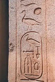 З п'яти титульних імен фараонів у картуш обрамлялися тронне ім'я (преномен) і власне ім'я (номен), що давалося при народженні[2].