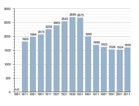 Станом на 31 грудня 2014 року в муніципалітеті офіційно проживало 70 іноземців з 10 країн, серед них 13 громадян країн Євросоюзу та 3 громадяни України.[4]