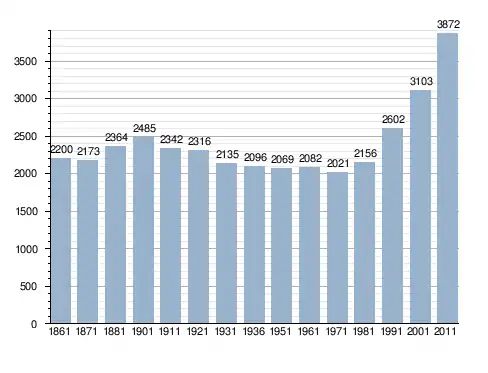 Станом на 31 грудня 2014 року в муніципалітеті офіційно проживали 163 іноземці з 31 країни, серед них 62 громадяни країн Євросоюзу та 6 громадян України.[4]