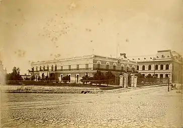 Будинок уряду (ліворуч) і Поштамт (праворуч) до об'єднання (1890)