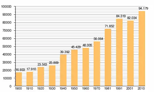 | Муніципалітет | 84 439 | 89 029 | 92 187 | 95 026 | 95 855 |