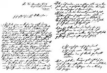 Попри те, що лист було написано готичним шрифтом, а записку — простою латиницею, почерк в тому і в іншому випадку був, схоже, однаковим[комм. 3].
