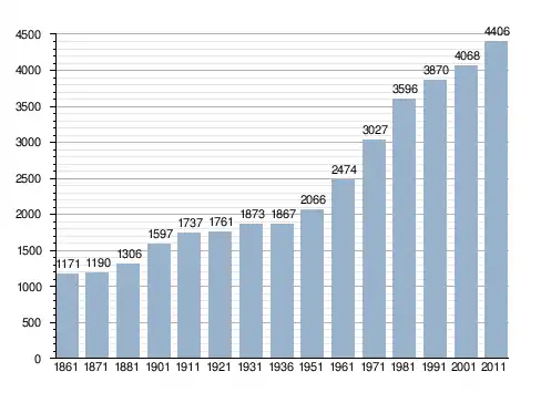 Станом на 31 грудня 2014 року в муніципалітеті офіційно проживали 354 іноземці з 30 країн, серед них 13 громадян країн Євросоюзу та 4 громадяни України.[4]