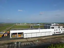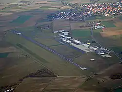 Побудоване на сільськогосподарських угіддях, на висоті 277 метрів над рівнем моря, розташоване NNE від пагорба Дорнберг, летовище було відкрито 11 липня 1970 року. Воно експлуатувалося у вигляді державно-приватного партнерства до 1991 року.