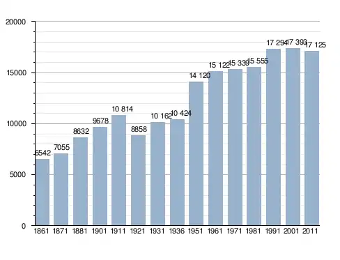Станом на 31 грудня 2014 року в муніципалітеті офіційно проживало 495 іноземців з 43 країн, серед них 183 громадяни країн Євросоюзу та 7 громадян України.[4]