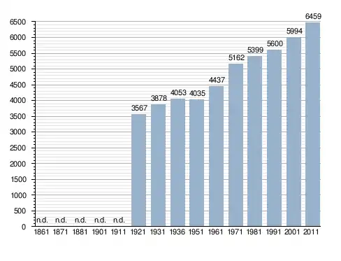 Станом на 31 грудня 2014 року в муніципалітеті офіційно проживало 468 іноземців з 42 країн, серед них 229 громадян країн Євросоюзу та 4 громадяни України.[4]