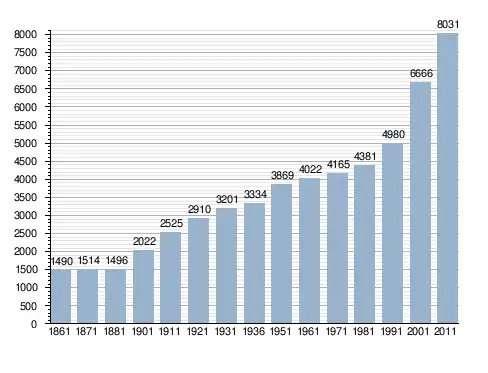 Станом на 31 грудня 2014 року в муніципалітеті офіційно проживали 892 іноземці з 46 країн, серед них 130 громадян країн Євросоюзу та 36 громадян України.[4]
