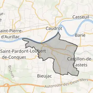 Муніципалітет був розташований на відстані[2] близько 520 км на південь від Парижа, 50 км на південний схід від Бордо.