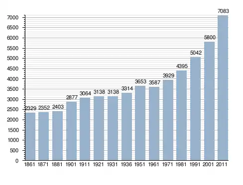 Станом на 31 грудня 2014 року в муніципалітеті офіційно проживали 1262 іноземці з 43 країн, серед них 113 громадян країн Євросоюзу та 14 громадян України.[4]