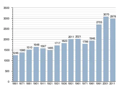 Станом на 31 грудня 2014 року в муніципалітеті офіційно проживало 99 іноземців з 29 країн, серед них 15 громадян країн Євросоюзу.[4]