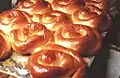 | Ensaïmada [ənsəiˈmaðə] Мальоркська випічка «ансаїмаза» / «енсаїмада» | Традиційна мальоркська випічка. Інгредієнти: пшеничне борошно, вода чи молоко, яйце, цукор, свинячий жир, дріжджі. Часто поливається розтопленим шоколадом, абрикосовим варенням, масою турро, може покриватися шматочками мальоркської ковбаси, посипатися цукром. На Філіппінах існує місцевий різновид, який називається «ensaymada». | |