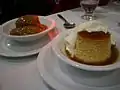 - Flam, gelats, pastís de xocolata, de llimona i de formatge. — Крем-карамель (з горішнім шаром м'якої карамелі), морозиво, шоколадні, лимонні та сирні тістечка.