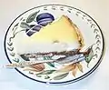 | Pastís [pəsˈtis] Тістечко | Традиційний європейський десерт. Найчастіше зустрічаються тістечка з шоколадом (кат. pastís de xocolata), сирні тістечка «чизкейки» (кат. pastís de formatge) та лимонники (кат. pastís de llimona). На малюнку — «чизкейк». |