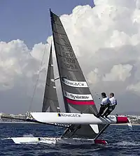 Завдяки своїм конструктивним особливостям вітрильні катамарани показують гарні результати, які досягаються завдяки великій остійкості суден та різкому зменшенні змоченої поверхні при невеликому крені — коли в воді лишається лише один підвітрений корпус, а інший виходить з води.