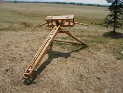 Катапу́льта (з грец. καταπέλτης, катапельтас, від κατά, ката — «вниз, всередину, проти» та πάλλω, пало — «врівноважувати чи направляти снаряд перед його запуском») — один з числа ручних механічних приладів, що використовується для метання снарядів на велику відстань без допомоги вибухових та інших речовин. Один із численної кількості видів античних та середньовічних машин які використовувалися під час облоги.