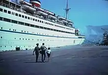 | Пароплав «Берлін» у період роботи в «Норддойче Ллойд» | «Адмірал Нахімов» в порту Новоросійська в день катастрофи |