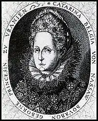 ![]() Катерина Бельгіка Оранська Портрет Катерини Бельгіки пензля Яна ван Равестейна, 1617, Мауріцгейс | |